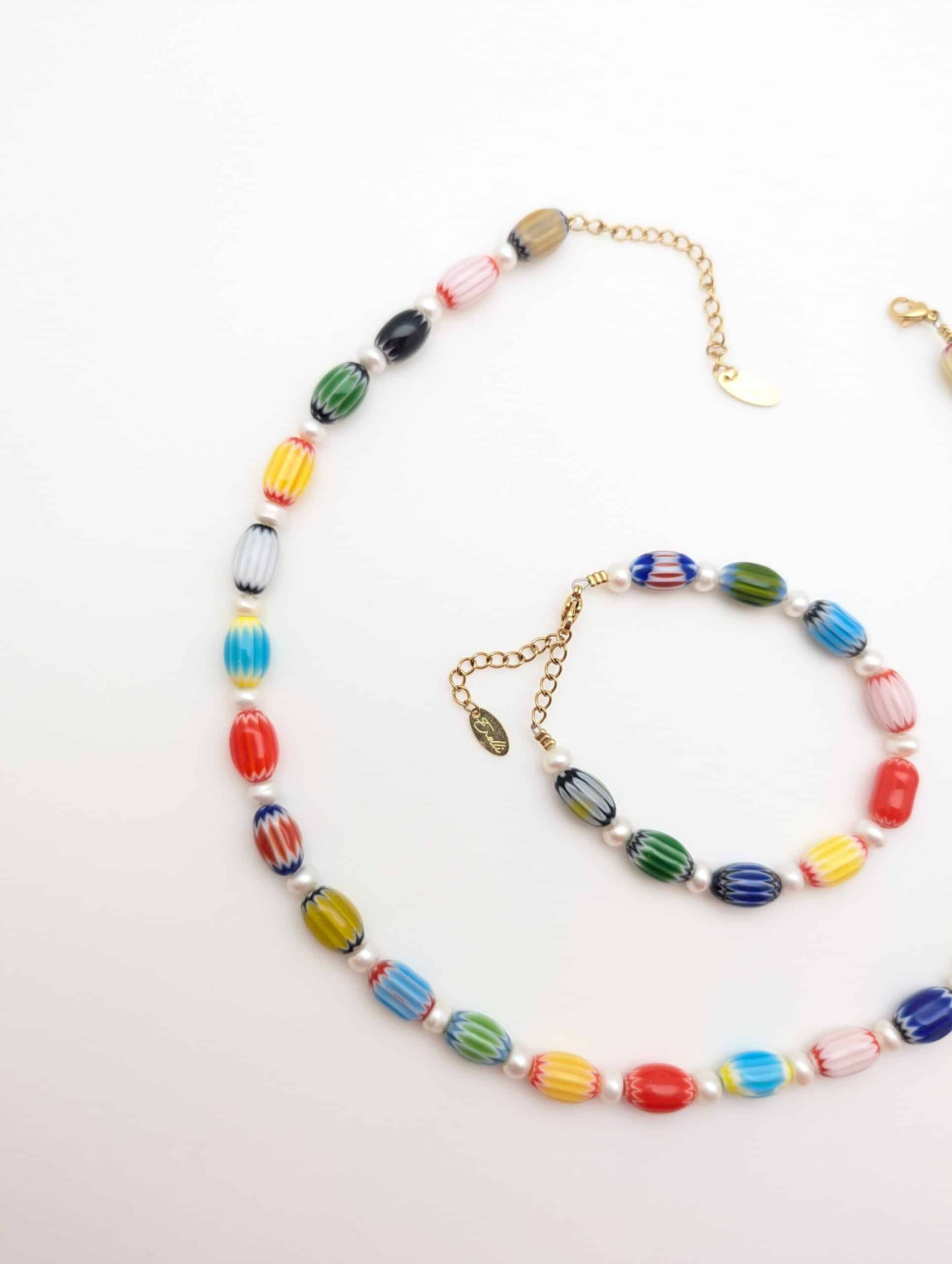 Le printemps, c’est précisément la saison qui inspire le plus Élodie : légèreté, couleurs délicates, matières qui captent la lumière… Les nouvelles collections mêlent nacre, turquoise et perles en verre fine, avec cette touche géométrique et bohème qui fait l’identité d’Enelli. Chaque pièce est travaillée à la main, dans son atelier, avec des matériaux sourcés auprès de fournisseurs français pour l’essentiel.